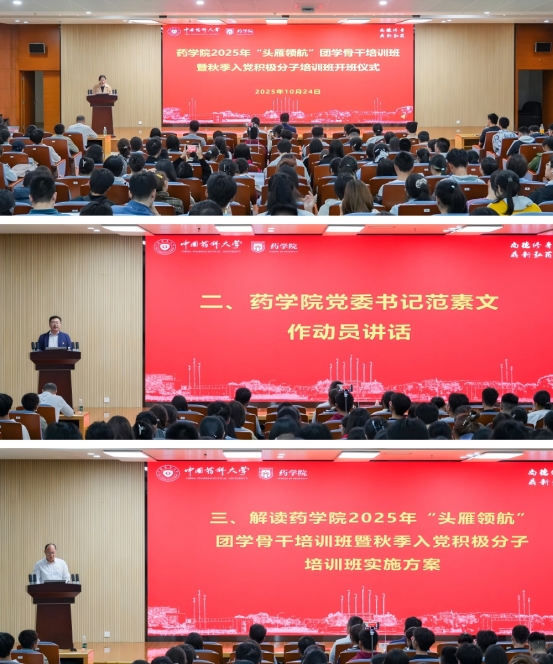 为深入学习贯彻习近平新时代中国特色社会主义思想,全面落实立德树人根本任务,切实加强入党积极分子和团学骨干的培养教育,药学院在10月24日至11月12日开办2025年秋季入党积极分子培训班暨第七期“头雁领航”学生骨干培训班,学院3名教职工入党积极分子,298名学生入党积极分子,114名“头雁领航”学生骨干学员参加集中培训。
