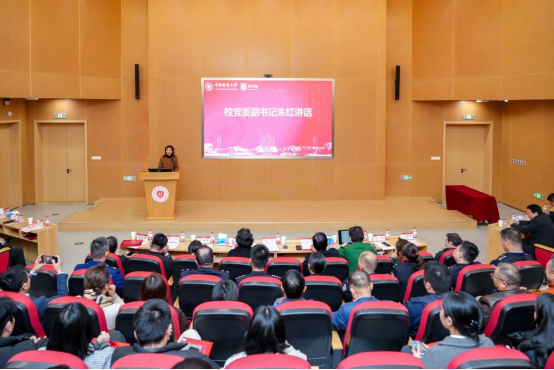 校党委朱红副书记在讲话中充分肯定了药学院青年成长导师制度,并提出三点殷切希望:希望各类型导师肩负育人责任与重托,主动关心学生思想、学业、生活,以自身阅历、视野和实践智慧,助力学生认清国情、了解行业与社会需求;希望各类型导师引导学生坚定理想信念、提升实践能力和综合素质,补齐从校园到社会的“最后一公里” 认知短板,成为学生成长道路上的引路人、暖心人、守护人;希望药学院以此次聘任仪式为契机,将校内外青年成长导师资源深度融入思政教育、职业规划和社会实践等全链条育人环节,搭建沟通联络平台,确保工作落地见效,形成思政工作品牌。