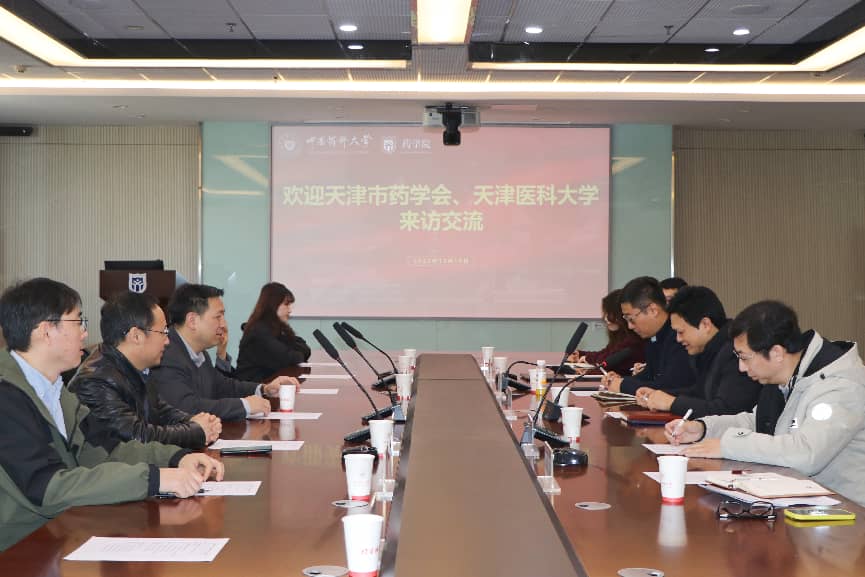 12月19日,天津市药学会、天津医科大学药学院一行来我校药学院进行调研交流。药学院院长吴照球、副院长刘东飞等接待了来访客人,双方在综合研发楼G514会议室举行了座谈。座谈会由刘东飞副院长主持。