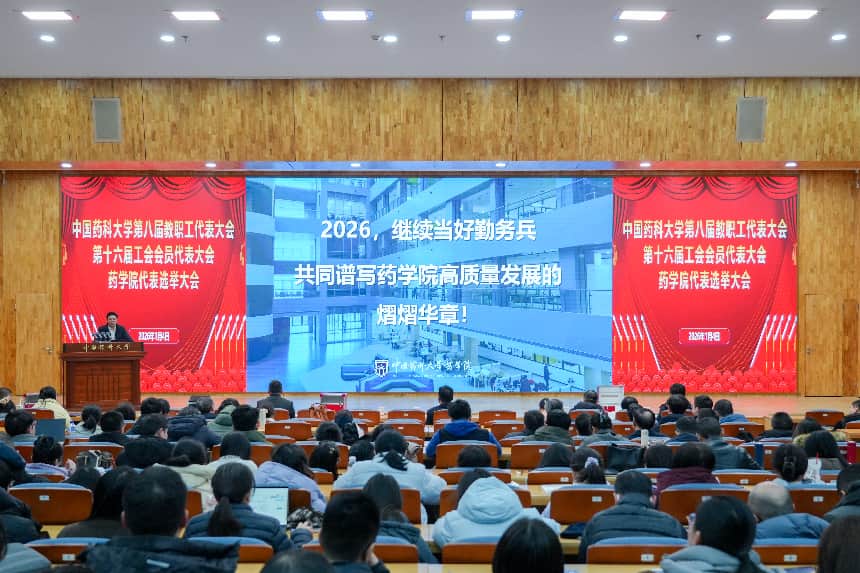 1月4日下午,药学院在江宁校区会议中心二楼报告厅召开全体教职工大会,选举产生参加中国药科大学第八届教职工代表大会和第十六次工会会员代表大会药学院代表,并进行2025年度院领导班子述职测评。学院领导班子成员、教职工参加会议。会议由学院党委副书记孟祥康主持。