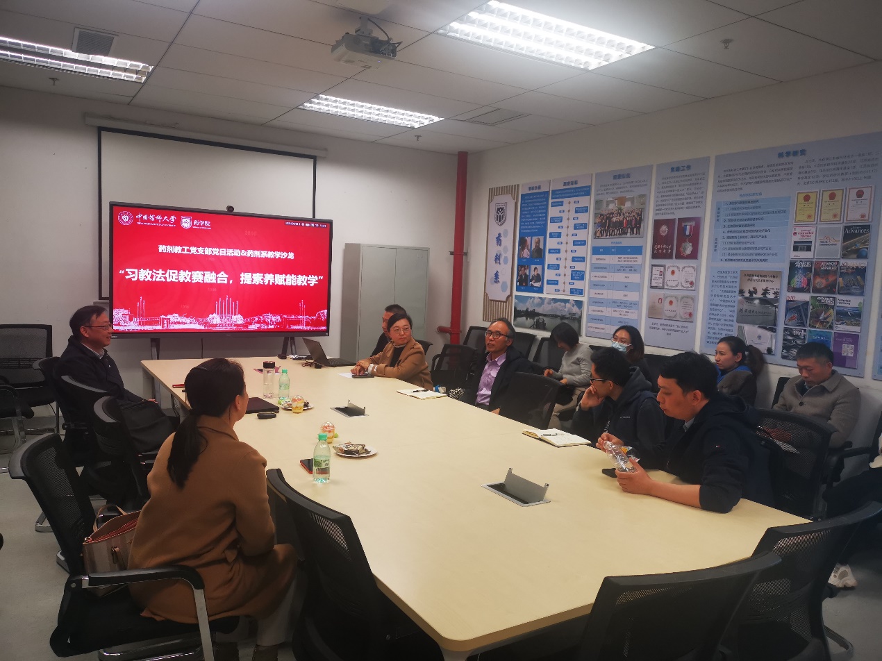 为充分发挥党员在教学中的先锋模范作用,提升教师教育教学能力,11 月 26 日下午,药剂教工党支部在学院实验楼 401 会议室举办“习教法促教赛融合,提素养赋能教学“主题党日活动暨教学沙龙。药剂系全体党员及近五年入职的青年教师参与活动。药剂系教工支部组织委员张文丽主持活动。