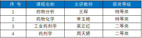 近日,江苏省第六届高校教师教学创新大赛结果揭晓,药学院教师获得优异成绩:药物化学系李玉艳老师团队和药物分析系王琛老师团队同时获得特等奖,实现同一届赛事中特等奖数量的新突破;药物制剂系吴正红老师团队、周天娇老师团队获得二等奖。